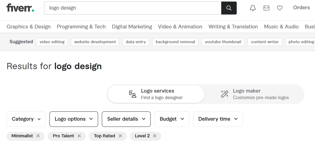 Moreover, you can filter by category, seller level (in seller details), adjust the search according to your budget, and select the delivery time. As you can see, many filters let you tailor your search, and you can find the best talent in the blink of an eye.